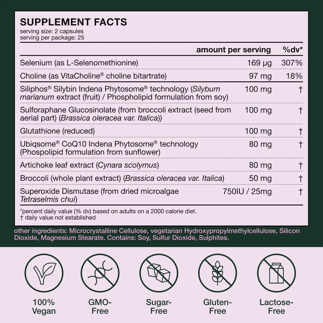 *Ingredients like Siliphos® Silybin (our supercharged milk thistle derivative) and artichoke help to protect liver cells, stimulate bile flow, promote fat metabolism and support overall health liver function